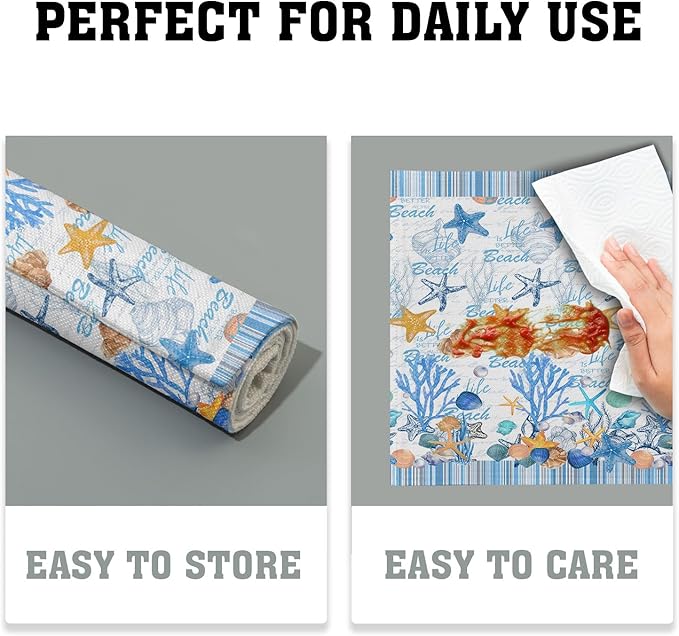 - 【DURABLE MATERIAL】Starfish beach theme placemats made of high quality natural linen fabric, foldable, durable and wrinkle-proof,wear resistant, for everyday use,improve your life quality.