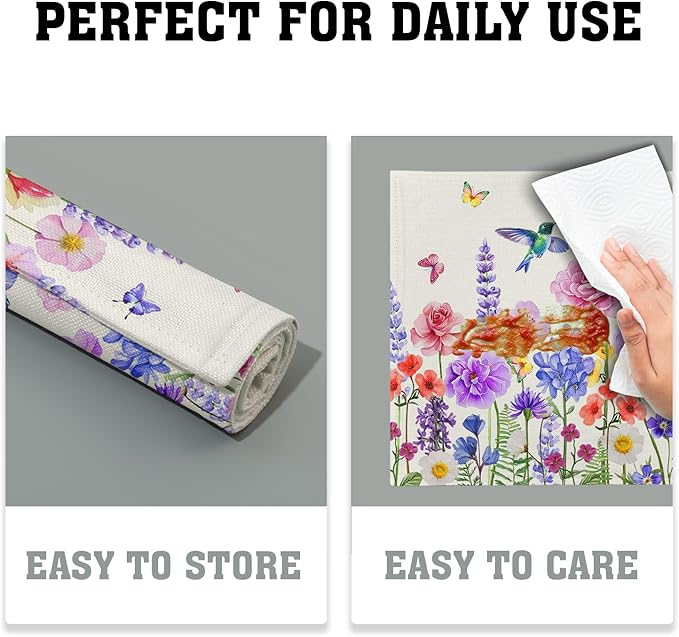 Giwawa Hummingbird Flower Placemats Set of 4, 12"x18" Watercolor Spring Herb Floral Table Mats, Wildflower Botanical Stain Resistant Washable Linen Place Mat for Kitchen Dining Party Decor