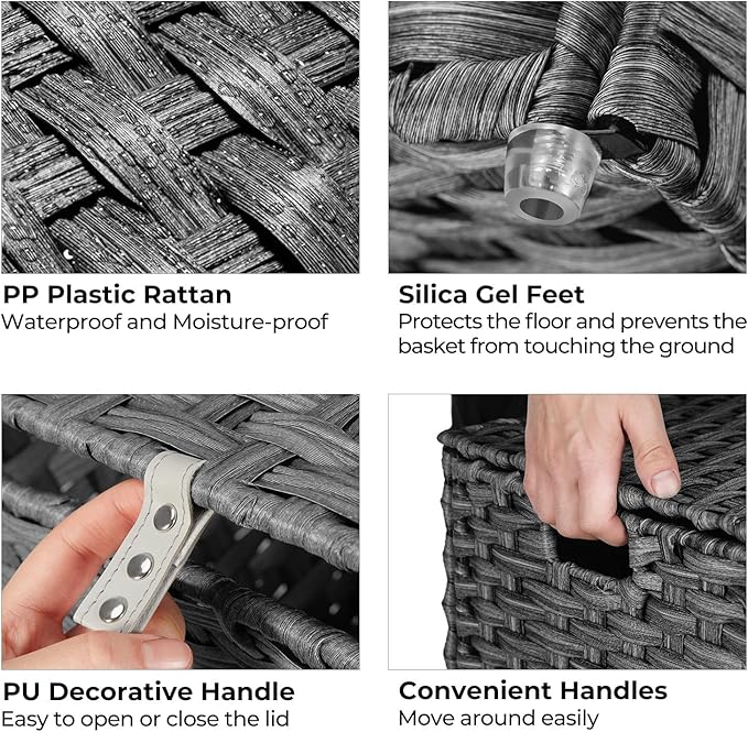 - Handwoven Craftsmanship: Greenstell laundry hampers are made from durable, waterproof synthetic rattan materials. Each basket is handcrafted by skilled artisans, making each piece unique with subtle differences. Waterproof, adjustable foot pads are added to keep clothes off the floor. The bright natural veneers and delicate weaving complement any furniture style, making the hamper lightweight, durable, and suitable for use in your bedroom or bathroom