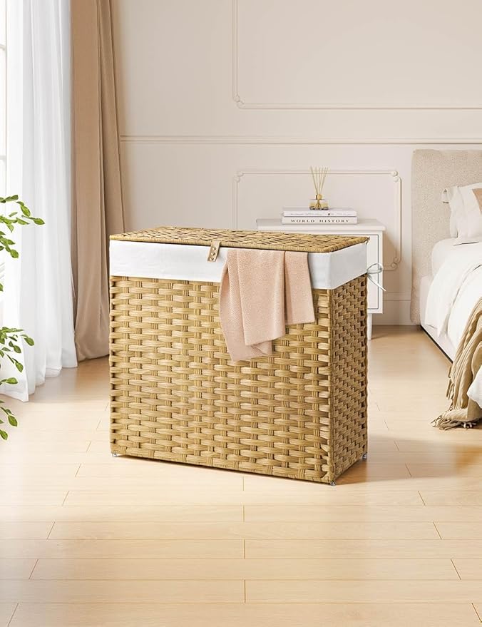- Handwoven Craftsmanship: Greenstell laundry hampers are made from durable, waterproof synthetic rattan materials. Each basket is handcrafted by skilled artisans, making each piece unique with subtle differences. Waterproof, adjustable foot pads are added to keep clothes off the floor. The bright natural veneers and delicate weaving complement any furniture style, making the hamper lightweight, durable, and suitable for use in your bedroom or bathroom