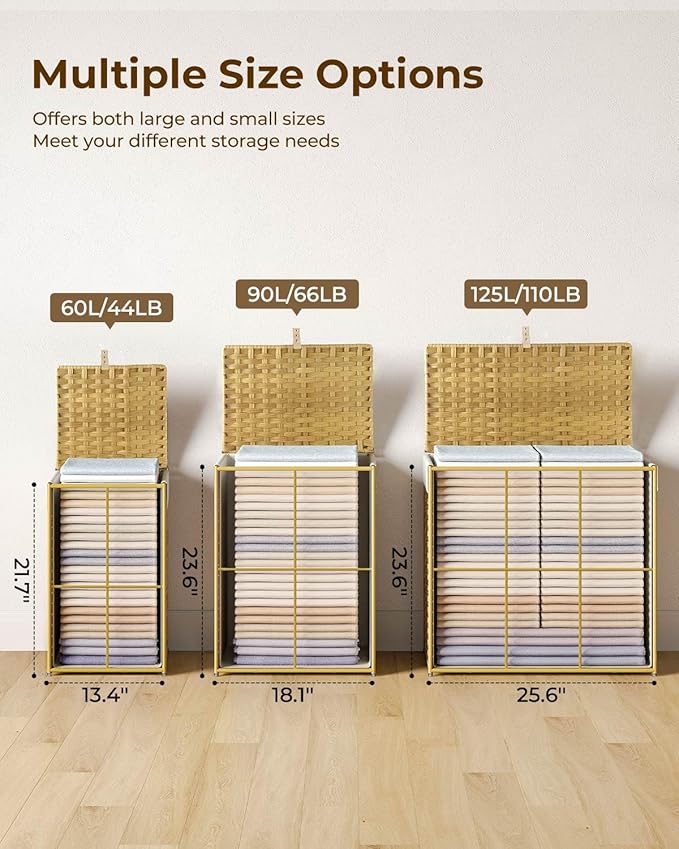 - Home Companion: The high-quality liner bags are easy to use—just place them in the basket, support the top, and secure the back strap. The hamper holds up to 125L of clothing for simple storage, and clothes can be separated with the two mesh bags. It also serves as a clothing storage bag and a helpful companion for moving and traveling