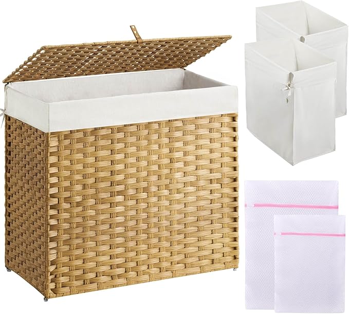 - Detachable, Washable Linings & Mesh Bags: Our laundry hamper with lid includes 2 detachable liner bags for easy removal and transport of clothes to the washing machine. The bags are washable and replaceable. The lid hides dirty clothes, keeping them out of sight and odor-free. The mesh bags prevent clothes from tangling or being pulled into the washer or dryer, making washing cleaner and easier