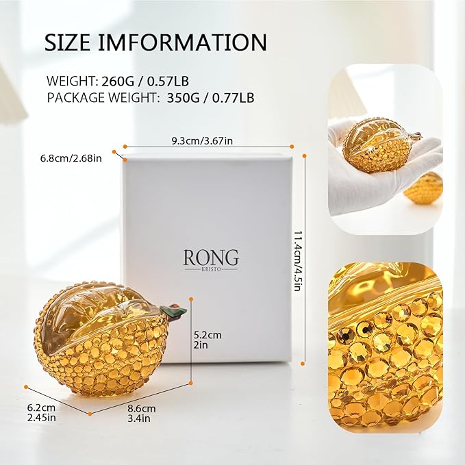 - ✨【Artisan Craftsmanship & Premium Materials】 Hand-Set Crystal Durian,Each "spike" is meticulously adorned with high-refraction grade crystals using traditional adhesive techniques, ensuring dazzling light play. K9 Crystal Body material polished to High grade clarity.