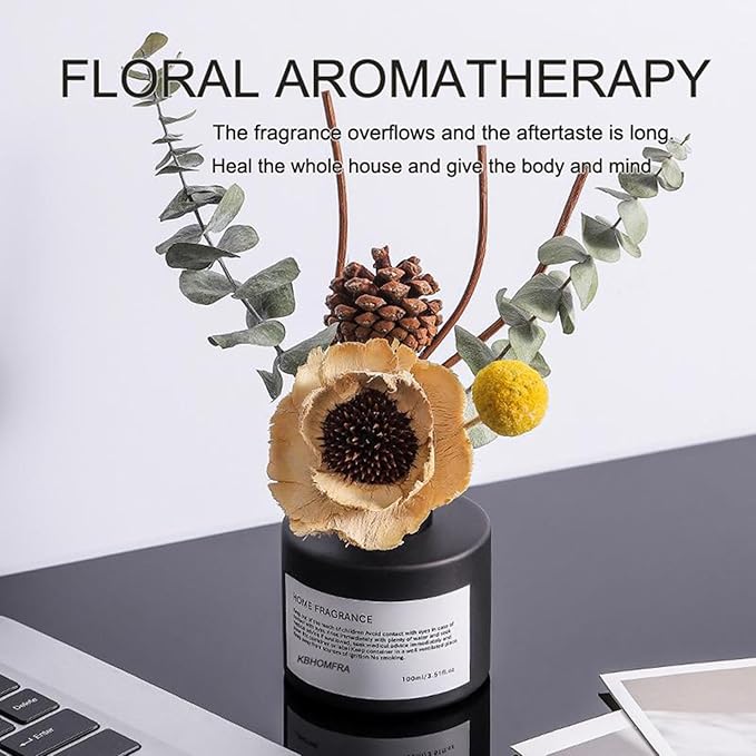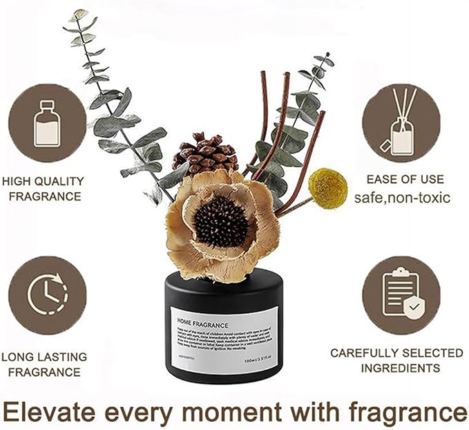 - Includes: One fragrance diffuser 3.38oz ,A bouquet of dried flowers (real flowers preserved through a special process), and Rattan sticks. In addition, free send 5pcs/pack diffuser sticks. Enjoy lasting fragrance for 30-50 days