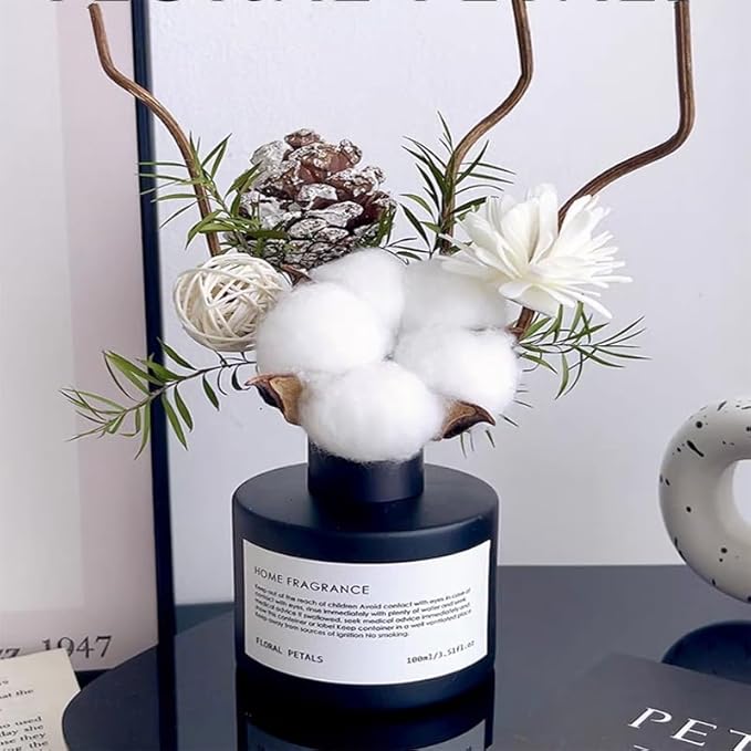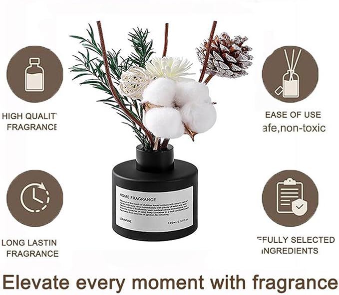 - Includes: One fragrance diffuser 3.38oz ,A bouquet of dried flowers (real flowers preserved through a special process), and Rattan sticks. In addition, free send 5pcs/pack diffuser sticks. Enjoy lasting fragrance for 30-50 days