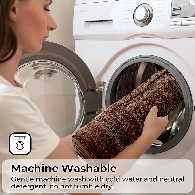 - Machine Washable - Machine wash the bathroom floor mat with cold water and mild detergent. Make sure the dryer is on low heat setting when tumble dry and keep away from chlorine and bleach. After professional testing, the color will remain vibrant after many washes.