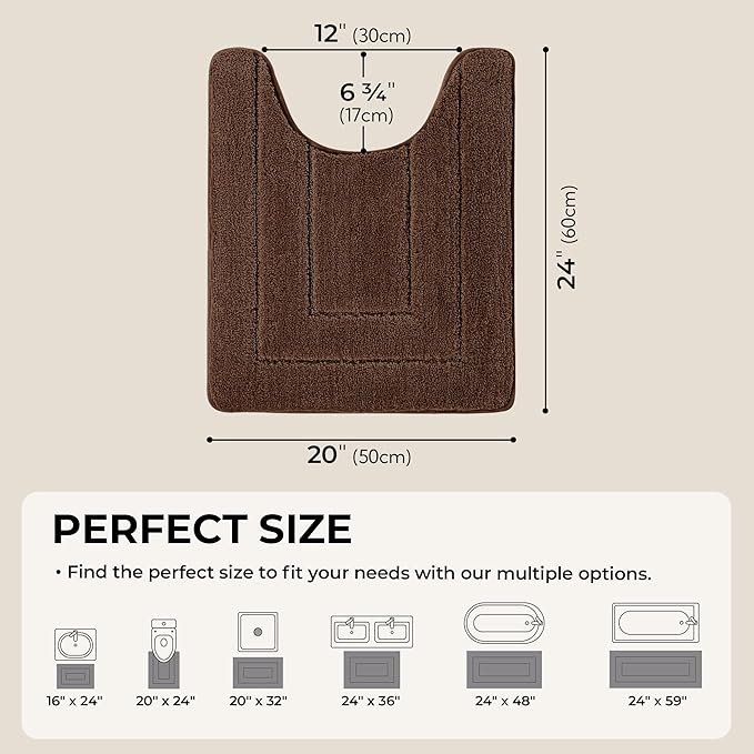 GRANNY SAYS Bathroom Toilet Rugs U Shaped, Bath Mats for Bathroom, Bath Rugs Non Slip Washable, Absorbent Microfiber Toilet Mat, Soft Plush Shaggy Bath Carpet, 20" x 24", Brown