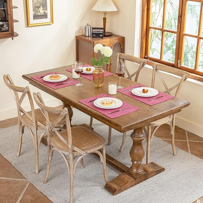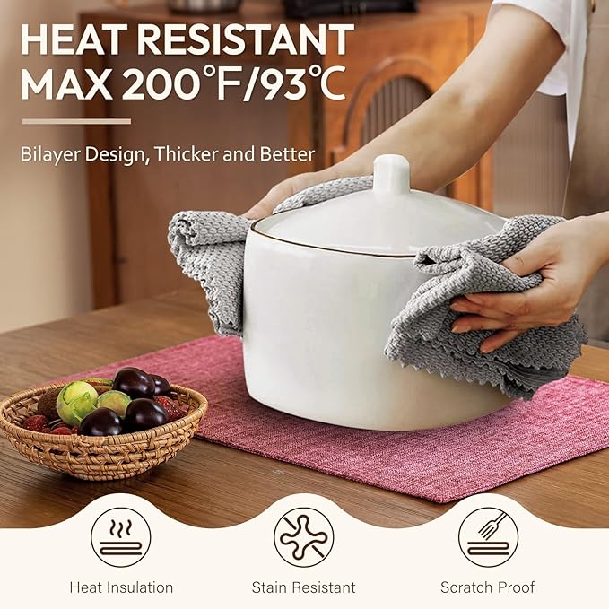 - Perfect Protection - Crafted from DUAL-LAYER faux linen, these placemats safeguard tables against 200°F heat, scratches and fading with a naturally textured surface. The dense weave stays wrinkle-free, while ECO-FRIENDLY material ensures every use protects both your tableware and the planet