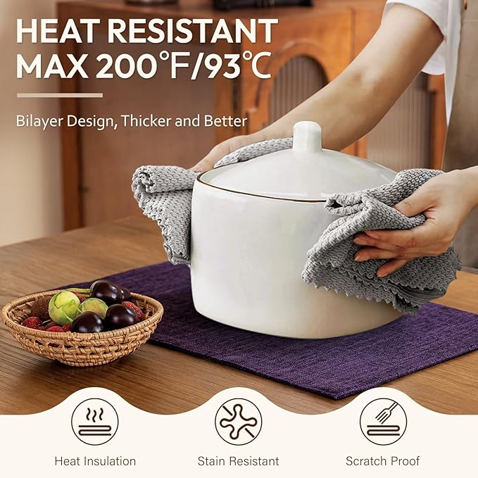 - Perfect Protection - Crafted from DUAL-LAYER faux linen, these placemats safeguard tables against 200°F heat, scratches and fading with a naturally textured surface. The dense weave stays wrinkle-free, while ECO-FRIENDLY material ensures every use protects both your tableware and the planet