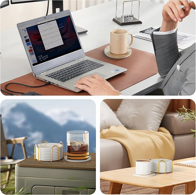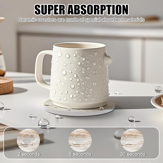 - SUPER ABSORPTION:Our Ceramic coasters are made of special absorbent materials that are more absorbent than stone, They can quickly within 5-10 seconds, preventing overflow onto the desktop and keeping it clean.