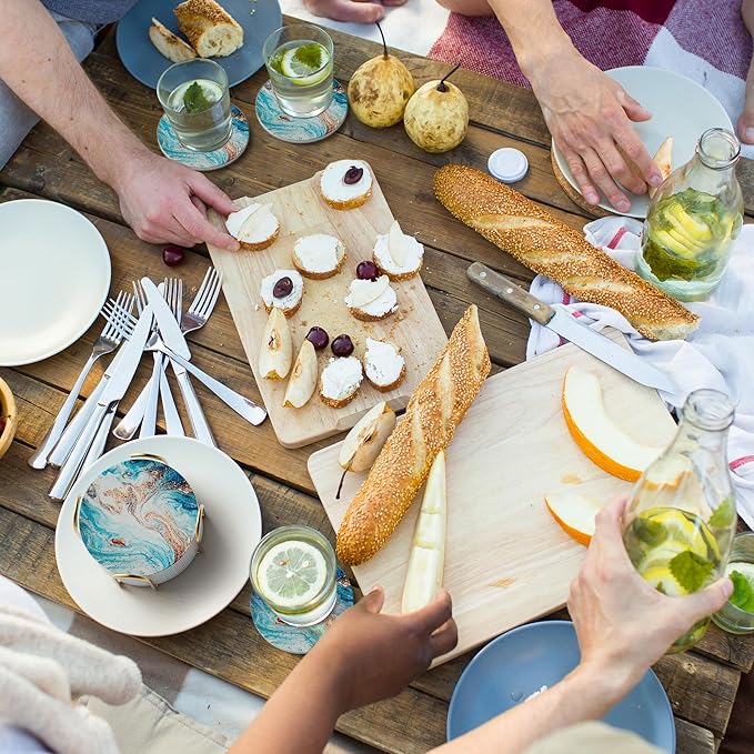- SPACE-SAVING STORAGE:This Coasters Set includes a metal holder to storage your coasters neatly when not in use, saving space and keeping your home organized.