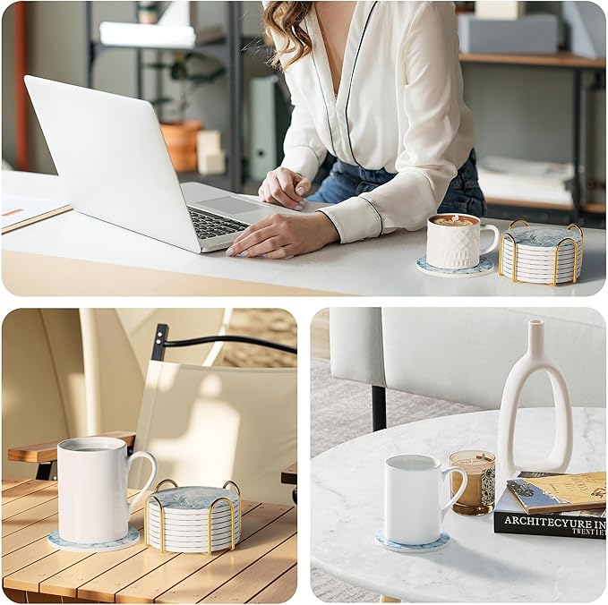 - SUPER ABSORPTION:Our Ceramic coasters are made of special absorbent materials that are more absorbent than stone, They can quickly within 5-10 seconds, preventing overflow onto the desktop and keeping it clean.