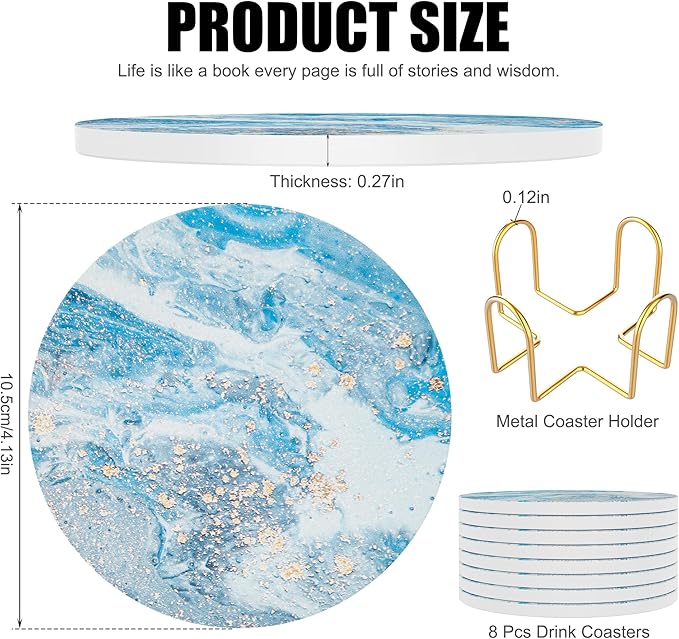 - SPACE-SAVING STORAGE:This Coasters Set includes a metal holder to storage your coasters neatly when not in use, saving space and keeping your home organized.