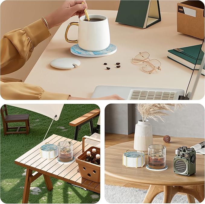- SUPER ABSORPTION:Our Ceramic coasters are made of special absorbent materials that are more absorbent than stone, They can quickly within 5-10 seconds, preventing overflow onto the desktop and keeping it clean.