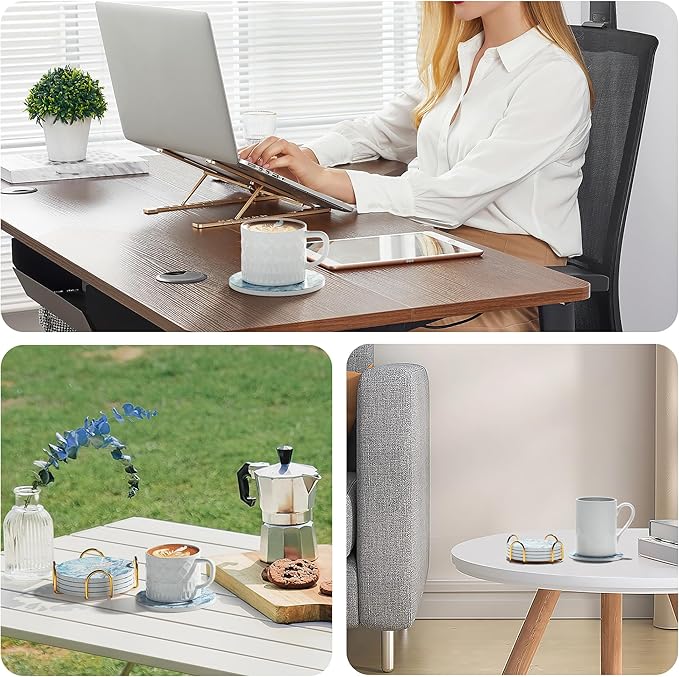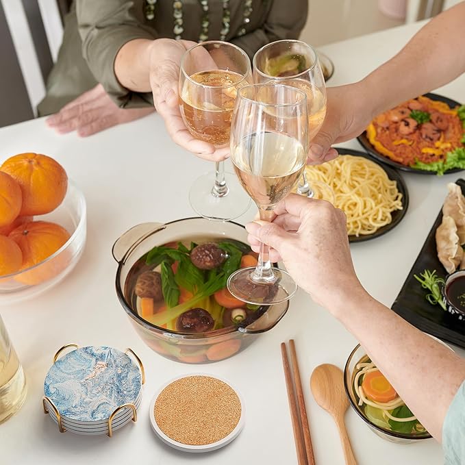 - SPACE-SAVING STORAGE:This Coasters Set includes a metal holder to storage your coasters neatly when not in use, saving space and keeping your home organized.