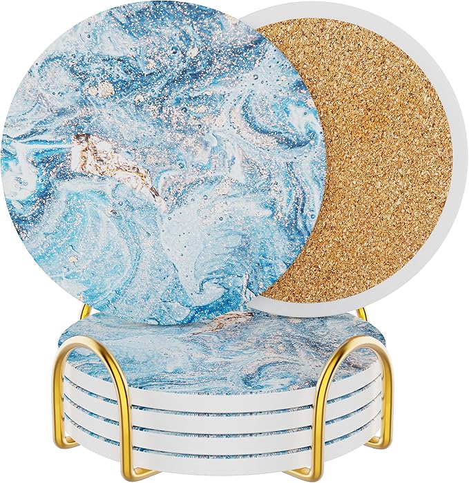 - CORK BASE:Each ceramic coaster is equipped with a cork back pad, which won’t scratch your tables and other surfaces and provides a non-slip surface to prevent your cup fall off.