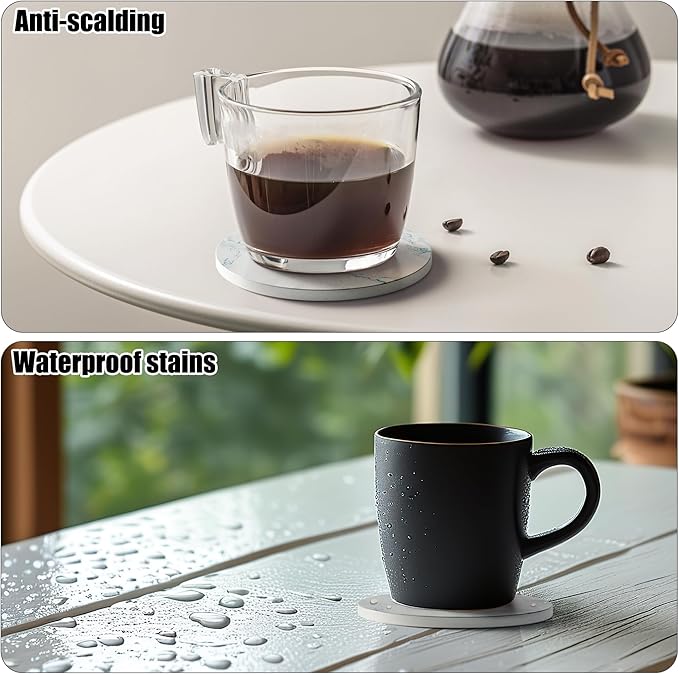 - SUPER ABSORPTION:Our Ceramic coasters are made of special absorbent materials that are more absorbent than stone, They can quickly within 5-10 seconds, preventing overflow onto the desktop and keeping it clean.