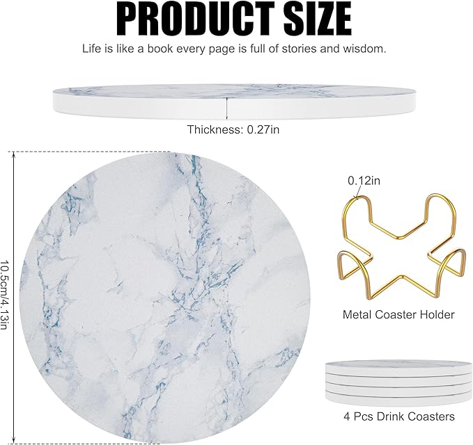 - SPACE-SAVING STORAGE:This Coasters Set includes a metal holder to storage your coasters neatly when not in use, saving space and keeping your home organized.