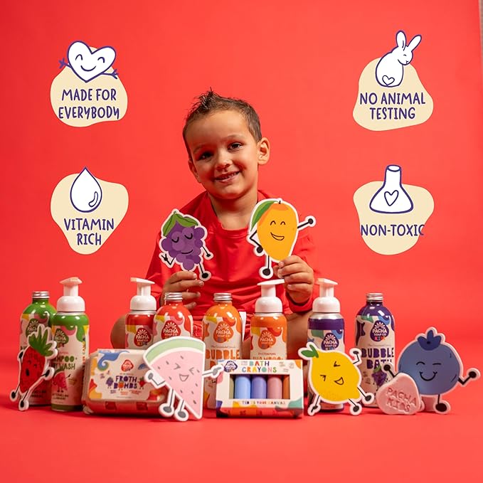 Pacha Soap Co. Kids Color Mixing Bath Bomb, 2-Pack - Safely Colors Bath Water, Kids Love Them, Plant-Based, Non-Toxic, No Animal Testing, Vitamin Rich, Endless Frothy Fun, Mix & Match