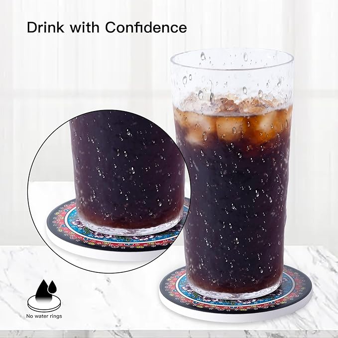 - WEAR-RESISTANT and SKID: Drinking coasters keeps cold and hot drinks from damaging furniture, Protect cups and glasses from scratching table surfaces.