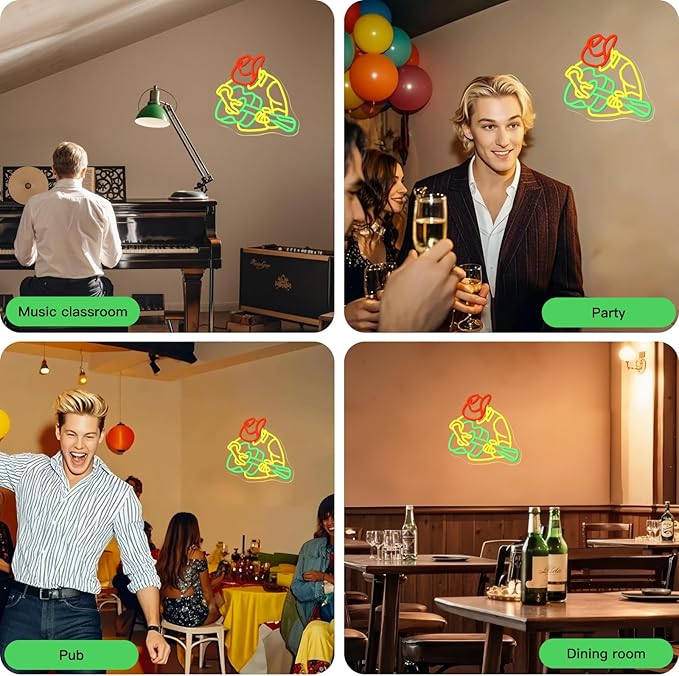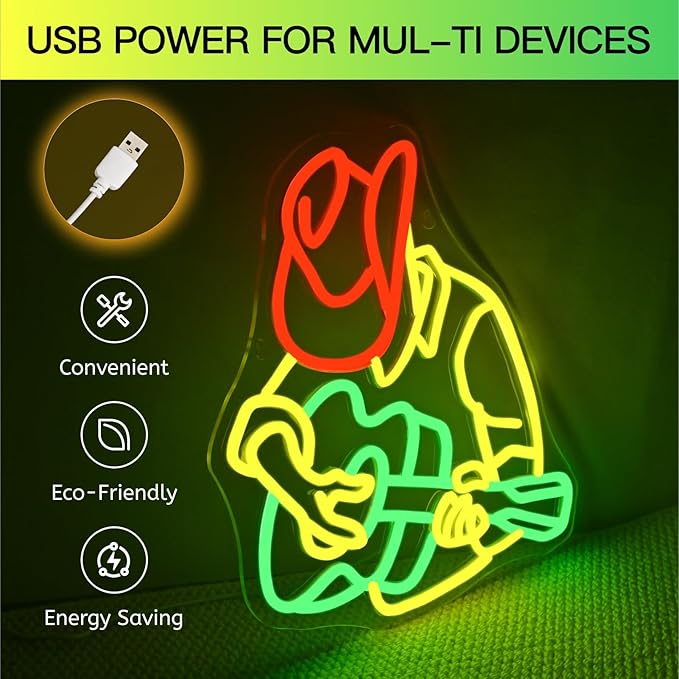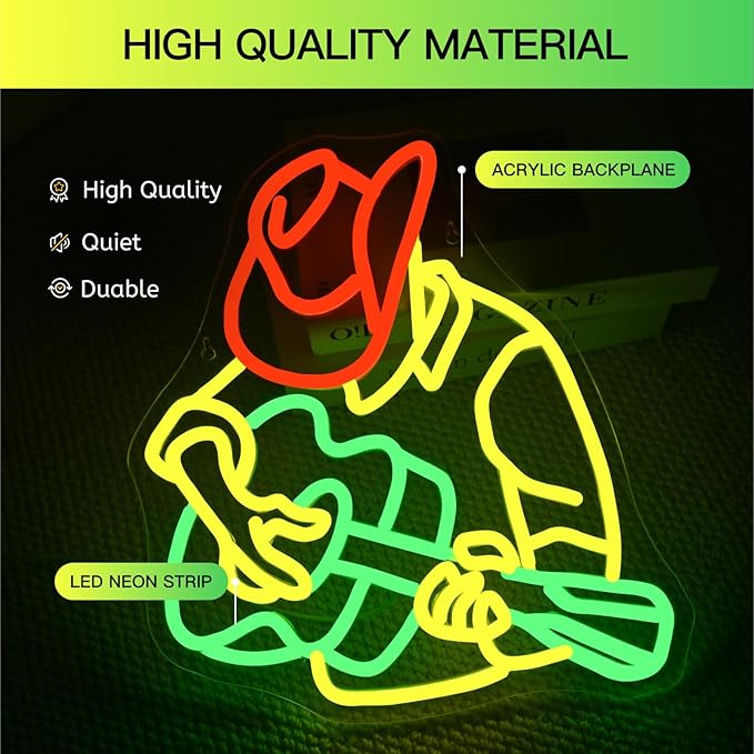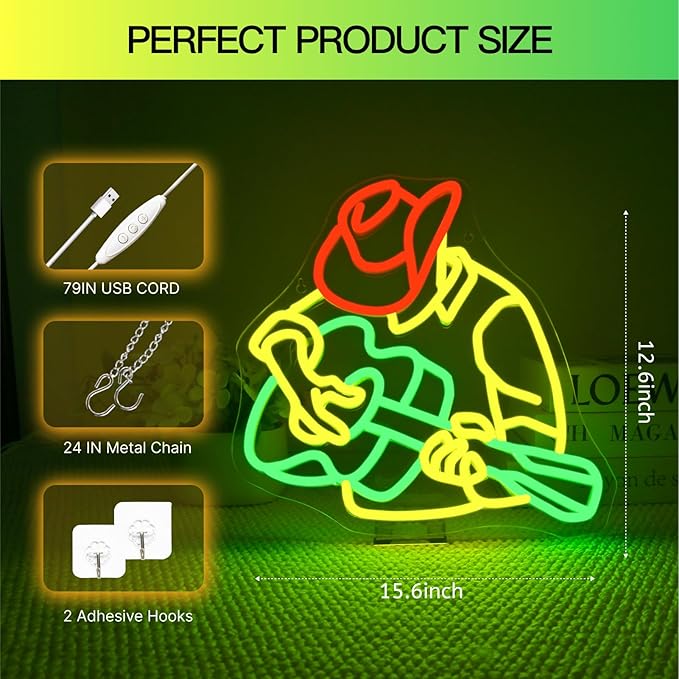 - Versatile Decor for Any Occasion: Whether you're looking to enhance your home decor, this western cowboy playing guitar neon light will add a fun touch to your place, or create an inspiring atmosphere in a personal space.