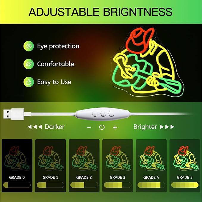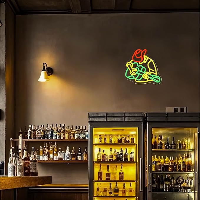 - About Western-Style Cowboy Neon Light: We designed this product by combining western cowboys and folk guitars. We hope to add some different neon colors to the private space of those folk lovers!