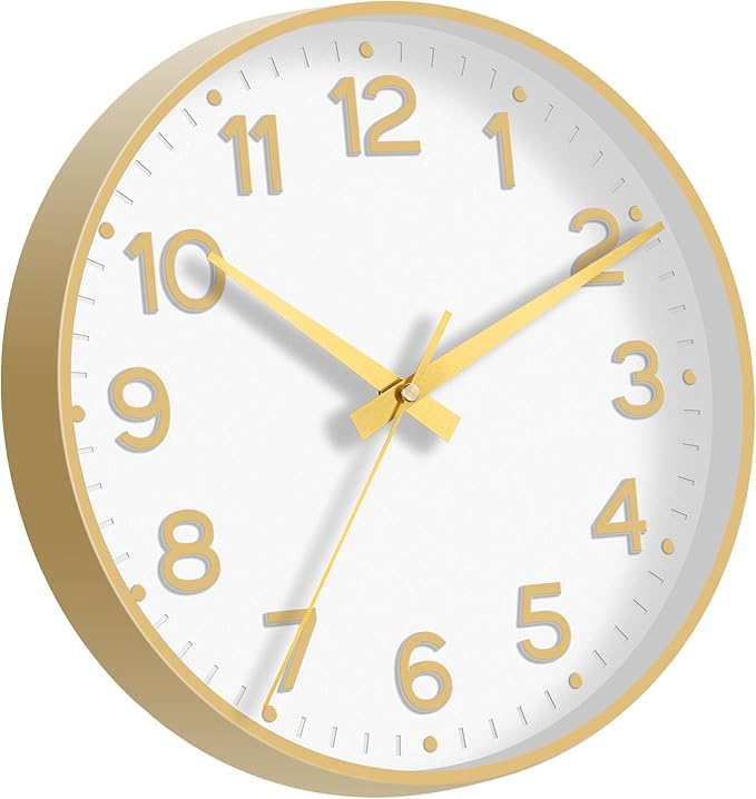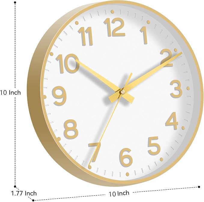 Wall Clock, 10 Inch Silent Wall Clocks Battery Operated-Modern Non Ticking Analog Clock Decorative for Kitchen Bedroom Office Bathroom(White Gold)