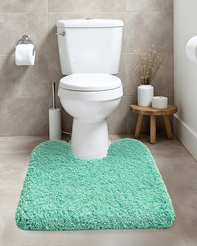 ILANGO Spa Blue Toilet Rugs U Shaped 22" × 24" Non Slip & Super Absorbent Extra Thick Soft, Washable Bath Mats for Bathroom Floor, Microfiber Plush Shaggy Contour Bath Rugs for Toilet,Dry Quick