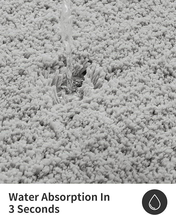 - Instant Water Absorption and Strong Anti Slip:doubled safety 3D plush fibers guide moisture at high speed,allowing it to dry in just 3 seconds,bidding farewell to dampness and stickiness.customized foam latex anti slip layer at the bottom,with a 60% increase in grip verified in the laboratory.the wet and slippery ground remains as stable as a rock, protecting the safety of the elderly,children,and cute pets