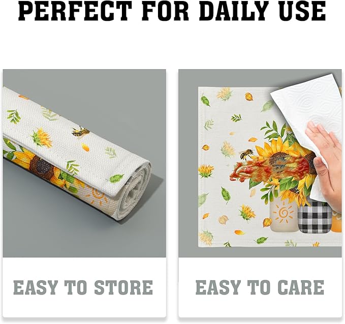Giwawa Sunflower Vases Placemats Set of 4 Summer Bee Yellow Floral Mason Jar Place Mat 12x18 Inch Stain Heat Resistant Linen Table Mats for Kitchen Dining Seasonal Party Decor
