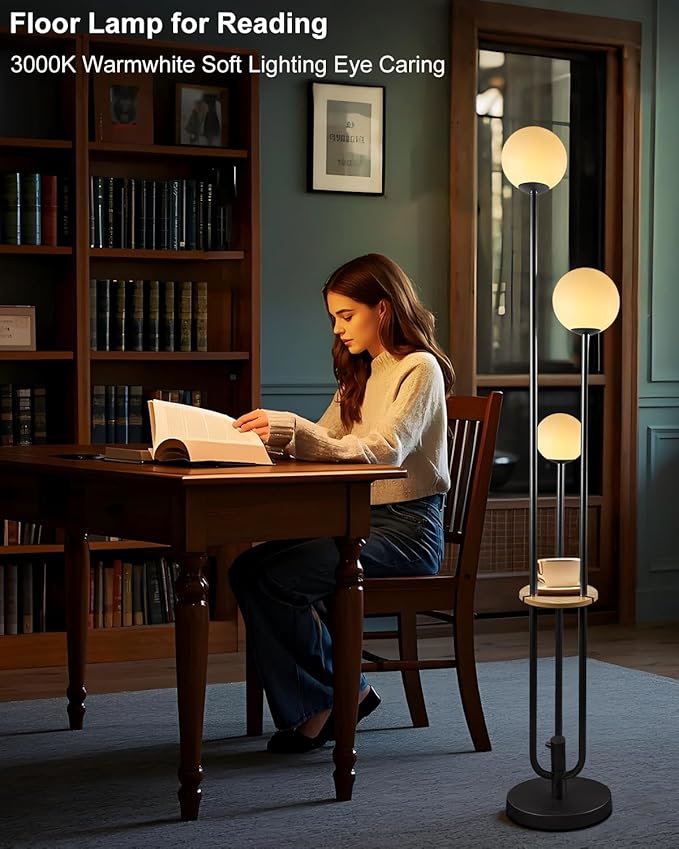 - Globe Shade Eye Caring: This vintage floor lamp features 3 frosted pc lampshade to create soft and comfortable lighting, effectively protecting your eyes. The light through the lampshade creates a warm atmosphere where you can comfortably sit on the sofa with a coffee or a book, perfect for living room, bedroom, home office