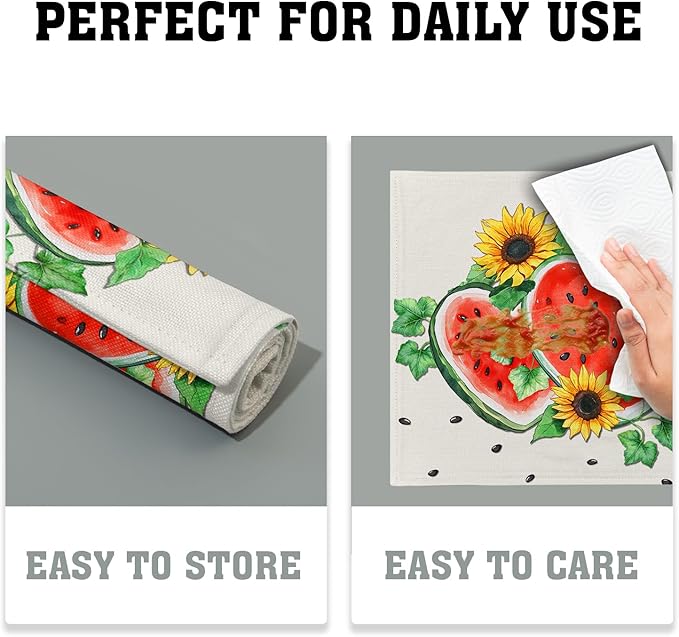 - 【DURABLE MATERIAL】Watercolor watermelon placemats made of high quality natural linen fabric, foldable, durable and wrinkle-proof,wear resistant, for everyday use,improve your life quality.