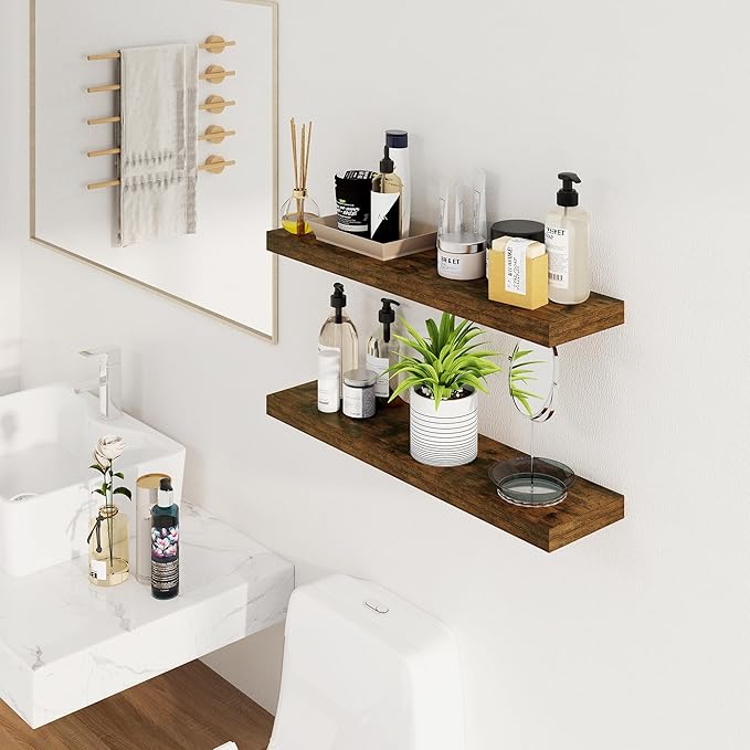 - Elevate Your Decor: These rustic wood floating shelves are the perfect addition to any room, offering ample space to display decor or store essentials. Made with premium engineered wood, they seamlessly blend with various interior styles, adding a touch of charm and sophistication