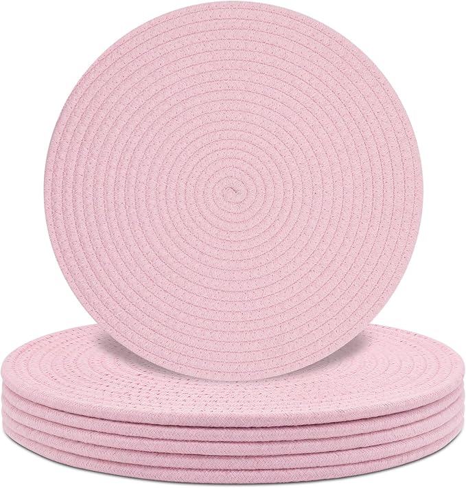 Round Placemats Set of 6, Cotton Rope Woven Table Mats, Hot Pads for Kitchen, Non Slip Heat Resistant Place Mats, 13 Inches Braided Placemat for Farmhouse Decor and Kitchen Table Decor (Pink)