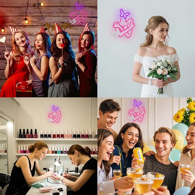 - Elevate Your Space with Artistic Flair: LED light size is 12.6"*15.4".The neon sign featuring a butterfly-adorned lady silhouette merges bold femininity with nature-inspired elegance. Crafted from durable acrylic, this neon signs for wall decor emits a soft, uniform glow through advanced LED strips, creating mesmerizing ambiance for bedrooms, bars, or gallery walls. Includes chains and hooks for instant installation
