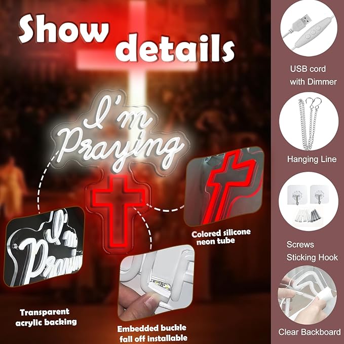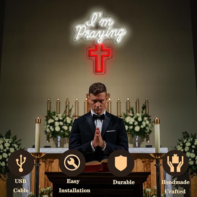 Ao Yee ZGLI’d Rather Be Golfing/Skiing/Basketball/Football/Baseball Neon Sign For Wall Decor Sport Neon Light USB Powered Light Up For Club Bedroom Man Cave Bar Dormitory Gift For Him Her (Light - praying)