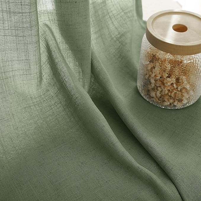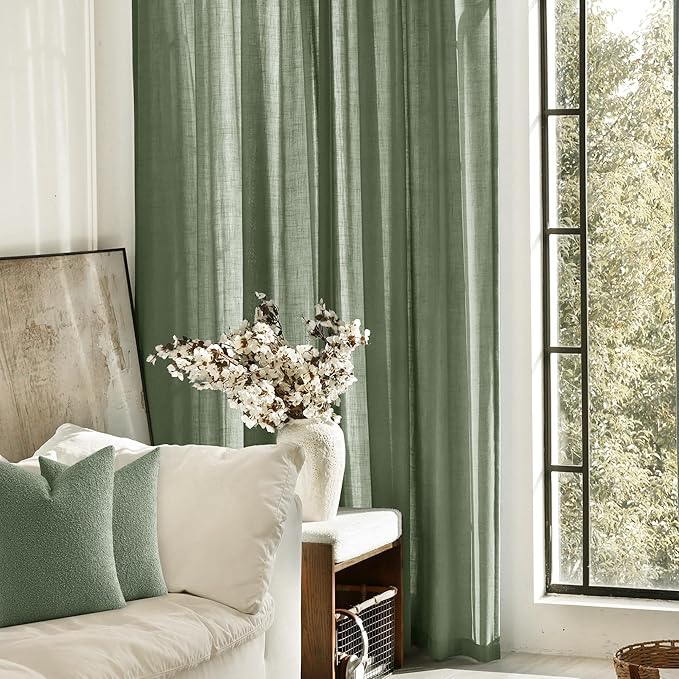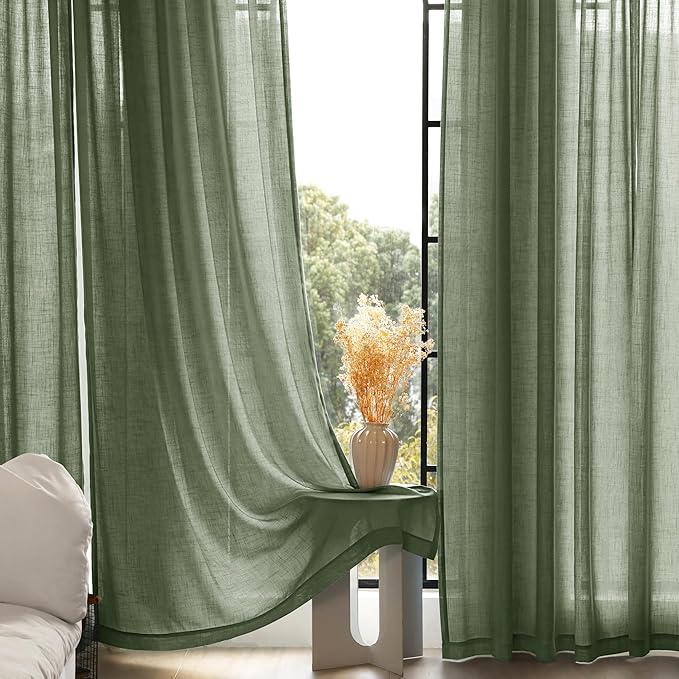 Olive Green Curtains 120 inch Length 2 Panels for Bedroom Back Tab Light Filtering Semi Sheer Drapes Linen Cotton Textured Airy Modern Farmhouse Living Room Sage Aesthetic Decor 52x120