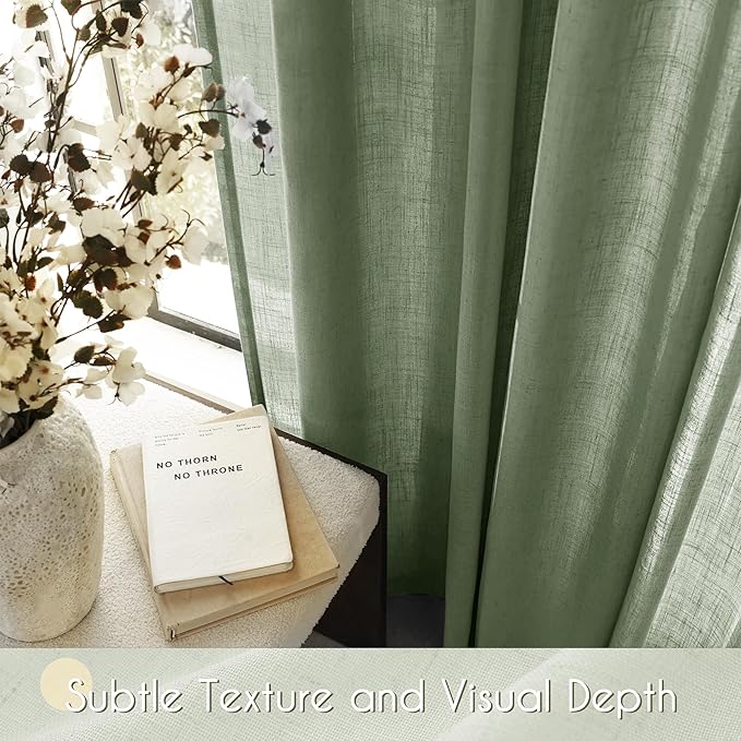 - Rich Linen Blend: Crafted from rich blend fabric of 30% linen and 70% polyester, the subtle, organic texture of neutral linen curtains adds depth to your space. Tiny slubs contribute to its natural, handcrafted aesthetic and give linen drapes more rustic and earthy vibe