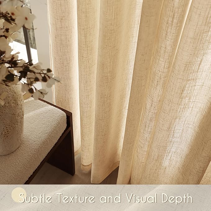 - Rich Linen Blend: Crafted from rich blend fabric of 30% linen and 70% polyester, the subtle, organic texture of neutral linen curtains adds depth to your space. Tiny slubs contribute to its natural, handcrafted aesthetic and give linen drapes more rustic and earthy vibe