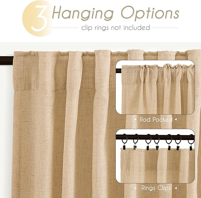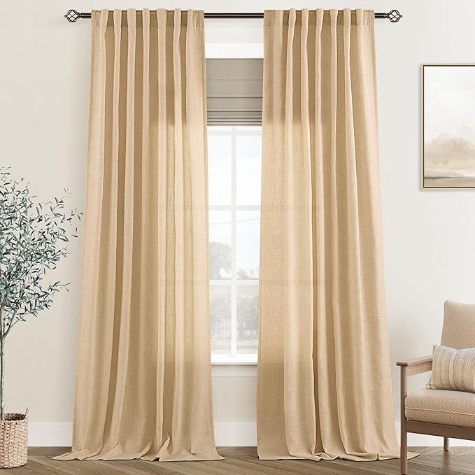 - Rich Linen Blend: Crafted from rich blend fabric of 30% linen and 70% polyester, the subtle, organic texture of neutral linen curtains adds depth to your space. Tiny slubs contribute to its natural, handcrafted aesthetic and give linen drapes more rustic and earthy vibe