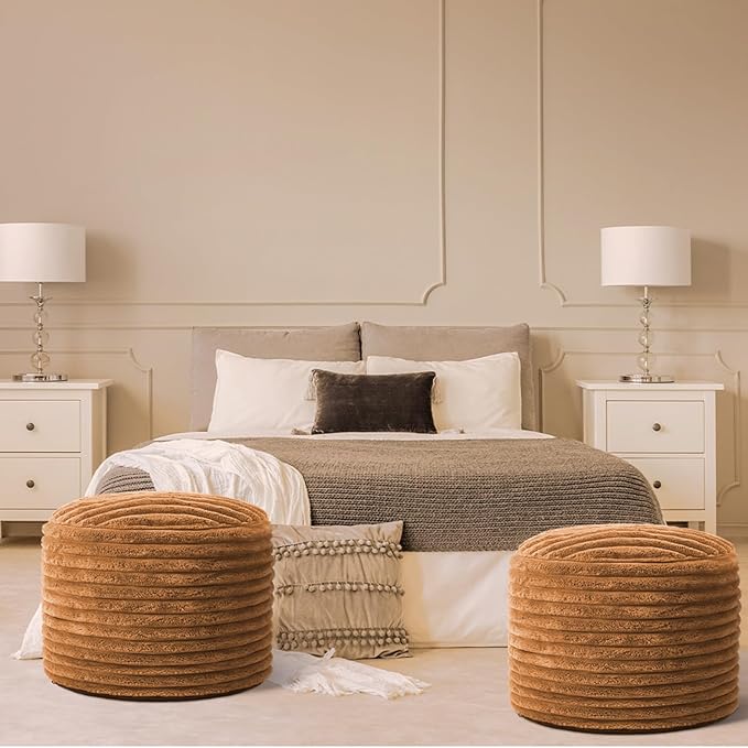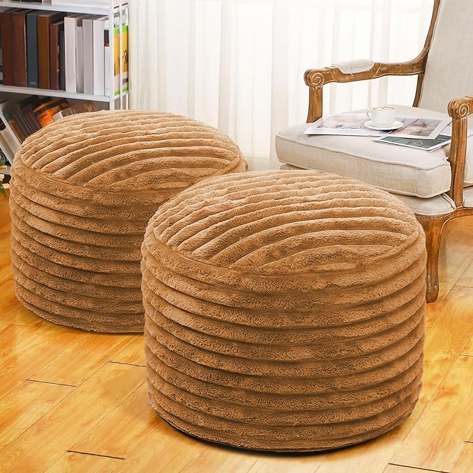 2 Pcs 26 x 18 Inch Unstuffed Pouf Cover Ottoman Foot Rest - No Filler, Faux Rabbit Fur Foot Stool Floor Bean Bag Floor Chair Storage for Living Room Bedroom Home Decor(Brown)