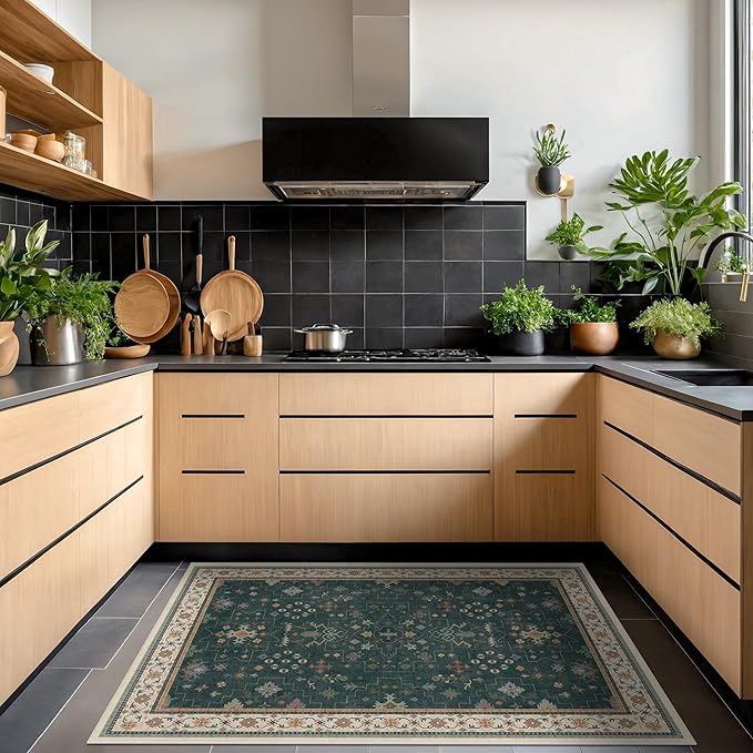 - Stylishly Versatile Design: Transform your living space with our rug's vintage, dark green hues. Its eclectic design, featuring floral and boho patterns, infuses a touch of timeless charm and unique aesthetic, making it a perfect fit for any room in your home