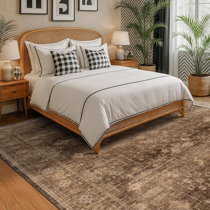 - Stylishly Versatile Design: Transform your living space with our rug's rich, sophisticated brown charcoal olive hues. Its boho design, featuring floral and boho patterns, infuses a touch of timeless charm and vintage aesthetic, making it a perfect fit for any room in your home