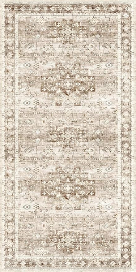 2x4 Boho Runner Rug, Neutral Farmhouse Entryway Rugs, Small Throw Runners for Hallway Bedroom Kitchen, Vintage Floral Design & Non-Slip Low-Pile Washable Stain Resistant Beige Latte
