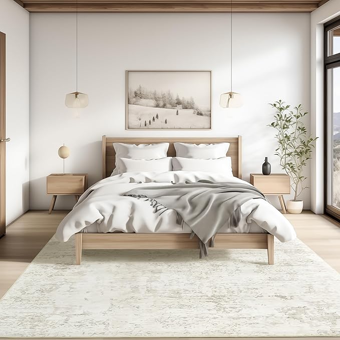 Art&Tuft Washable Rug, Anti-Slip Backing Abstract Area Rugs, Stain Resistant Rugs for Living Room, Foldable Machine Washable Area Rug(9'x12', Beige)