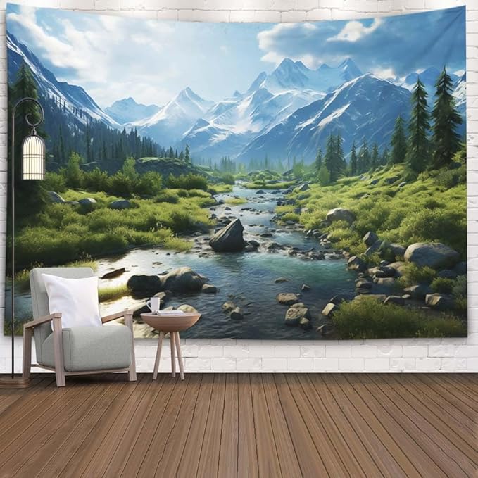 EMMTEEY Landscape Tapestry Wall Art for Bedroom Extra Large 92.5X70.9 Inch-Forest Mountains Water Scenery Durable Hanging Tapestry for Living Room