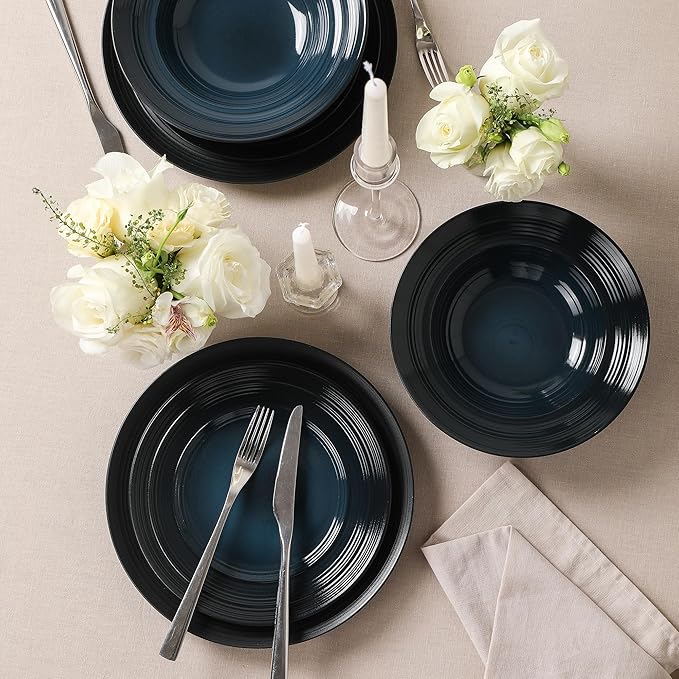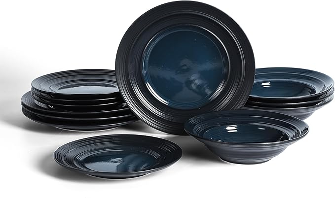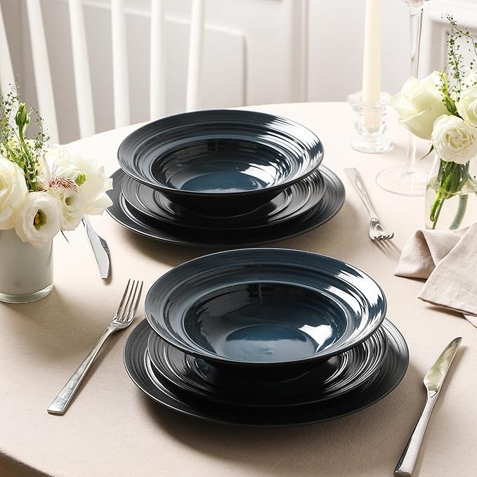 Earth & Clay Celeste 12-Piece Dinnerware Set Stoneware, Includes Dinner and Salad Plates, Cereal Bowls, Dishwasher and Microwave Safe, Dishes Set for 4, Blue