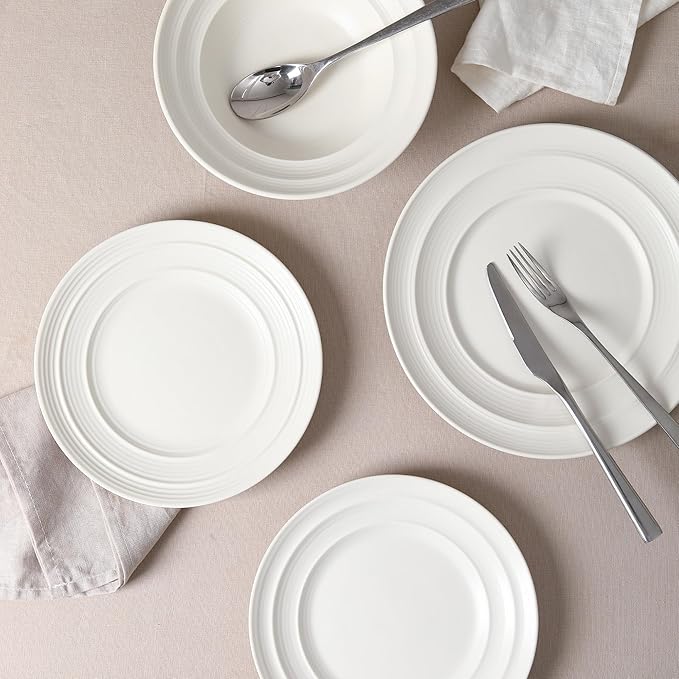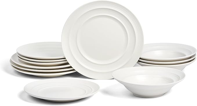 Earth & Clay Celeste 12-Piece Dinnerware, Stoneware, Plates and Bowls, Includes Dinner and Salad Plates, Cereal Bowls, Dishwasher and Microwave Safe, Dish Set for 4, Ivory White