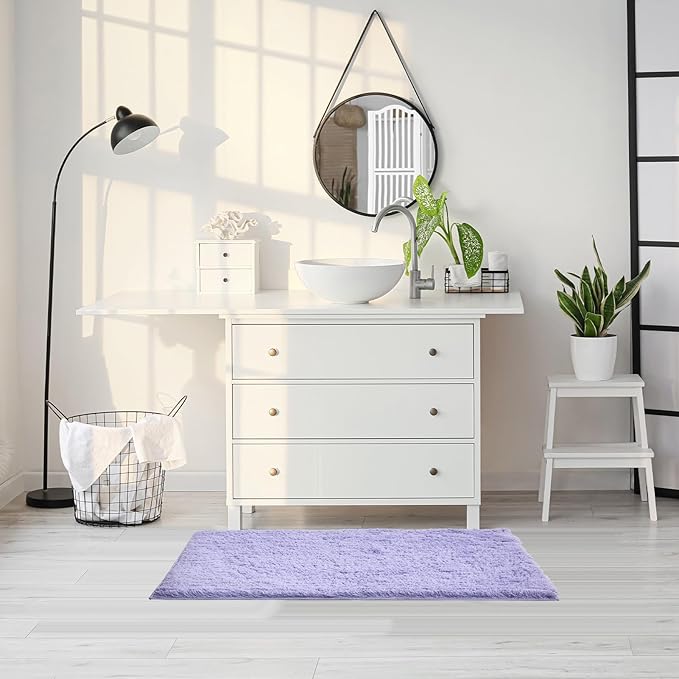 CozeCube Purple Bath mats 32" x 20", Non Slip Shaggy Bathroom Rug, Ultra Soft Machine Washable Plush Pile Rugs, Fluffy Microfiber for Bedroom