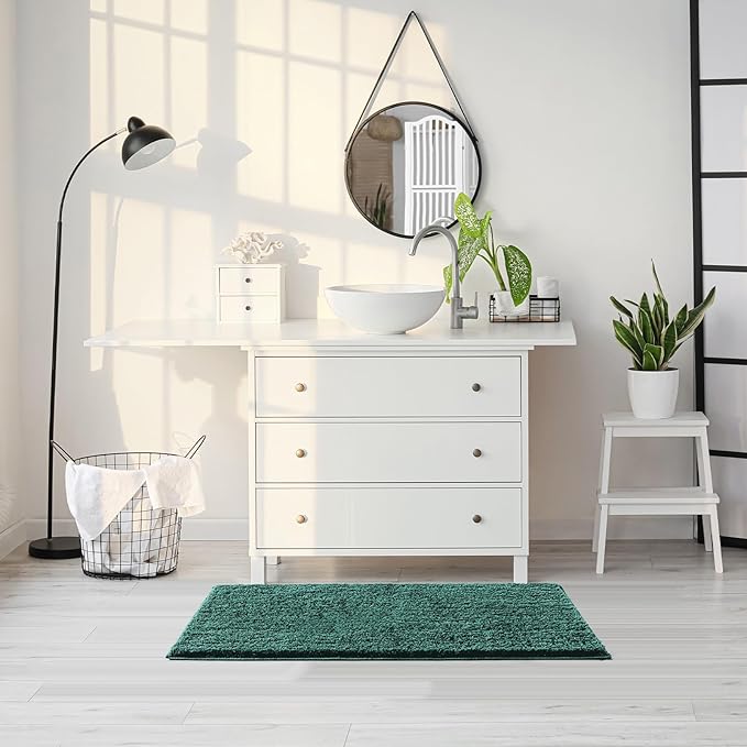 CozeCube Green Bath mats 36" x 24", Non Slip Shaggy Bathroom Rug, Ultra Soft Machine Washable Plush Pile Rugs, Fluffy Microfiber for Bedroom